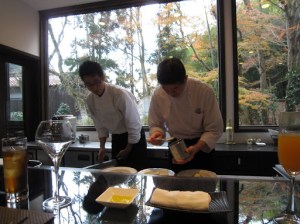 L’Herlequin Bis is an annex restaurant owned by Junichi Ito, who is also the executive chef. It’s located in the hills of Yugawara, which is an area known for its hot springs. There’s definitely a lot less traffic of customers than at his restaurant in Tokyo but I can see why he chose this spot. He combines Japanese and French technique and uses local ingredients. I’ve never really liked “fusion” cuisine in the U.S. and most other countries because as cliche as this may sound, many chefs do mistake it for “confusion”. I love Japanese influenced French and Italian cuisine in Japan because they actually fuse the two cuisines right. They use local, traditionally Japanese ingredients with foreign cooking techniques and preparation. After working in Belgium, France and Italy, Chef Ito went back to Japan and realized that he was so engrossed in learning about European cuisines that he had abandoned his own culture. He decided to work for a restaurant in Tokushima, Japan, where he finally got in touch with Japanese cuisine, which places an emphasis on the true characters and flavors of ingredients.