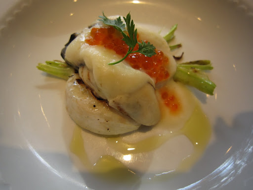 Oyster with turnips, celeriac puree and trout roe
