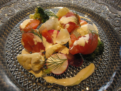 Seasonal local vegetables with squid and trout