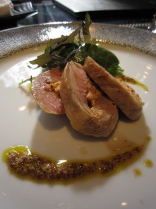 Pork roulade (stuffed with langoustine) with a mustard vinaigrette