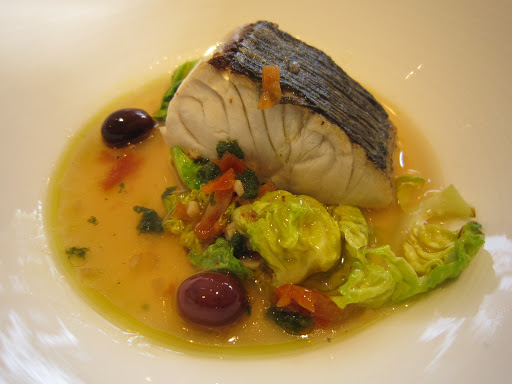 Sawara fish with brussel sprouts and olives