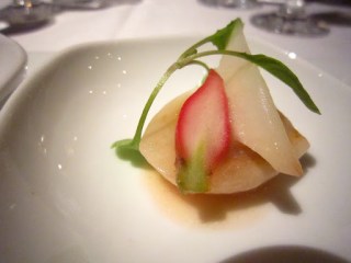 I had been reading Danny Meyer’s “Setting the Table” so I was curious to see whether the service at Gramercy Tavern would live up to his ideals. This dinner was a birthday present (October 2010) from my friend Robert. To be honest I never had a desire to eat at Gramercy Tavern and I didn’t know what to expect. I went there with Mike and Robert, who are arguably two of my favorite eating buddies.
