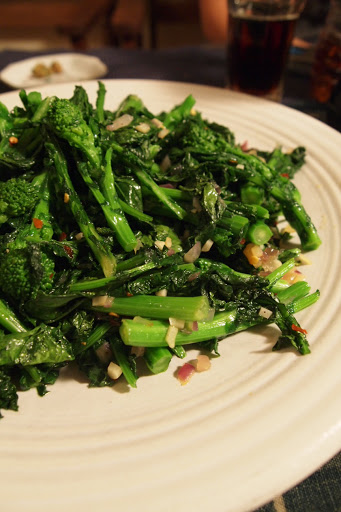 Broccoli Rabe with garlic, red onion and red chili flakes. I made this every day during my externship at Del Posto. You would think I got sick of it but I’ve truly come to appreciate the bitterness of broccolii rabe.