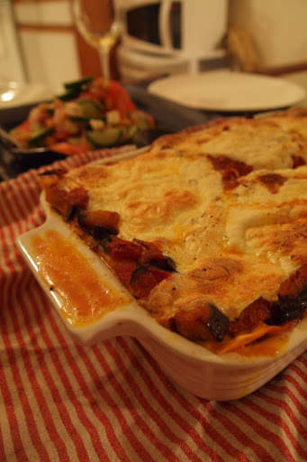 Vegetarian Lasagne (shiitake, portobello mushroom, eggplant, zucchini, swiss chard, ricotta and fresh mozzarella).