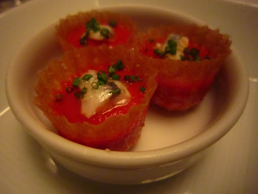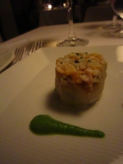 Anyway, I was told that Annisa only had female staff but that turned out not to be true. It was an elegant little restaurant- quite quiet with an older clientele. I saw Chef Anita Lo walk into the restaurant but she didn’t greet any guests. I think that the executive chef/owner should always greet their guests. That’s how it is in Japan but I feel that famous chefs in the U.S. let it get to their heads and they forget that they are in the business of hospitality.