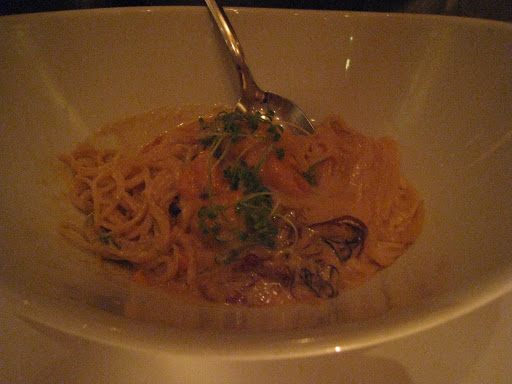 It’s a shame because the food was actually really good. With the exception of my appetizer (braised veal tongue with farro- there were clumps of oversalted farro, did not like the celery leaves as garnish, and was expecting a warm salad), I enjoyed my meal. The sea urchin angel hair was a little rich but delicious. For our main courses, the scallop with foie gras, and lobster wrapped with pork belly were exceptionally good. I was impressed with the freshness and quality of the ingredients but in the end the service just ruined the experience for me.