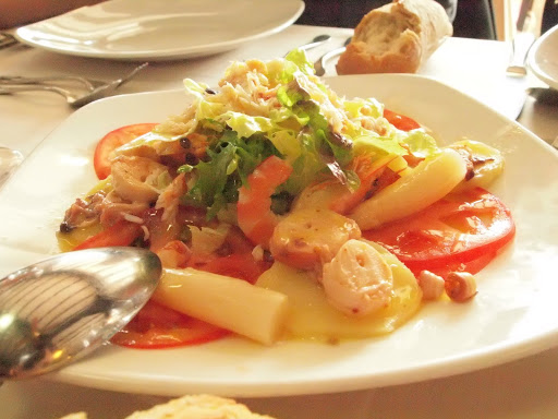 To start: a salad with crab, shrimp and octopus.  It was nice to see the head on the shrimp because in the U.S. I hardly ever see that! The shrimp was small but sweet and flavorful.  The crab was of great quality too and the salad was overall very light and refreshing.