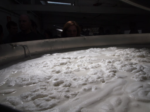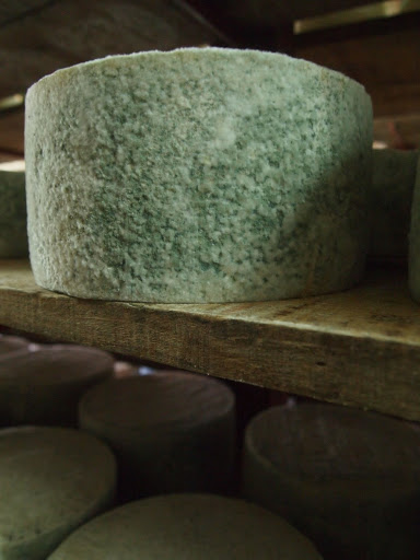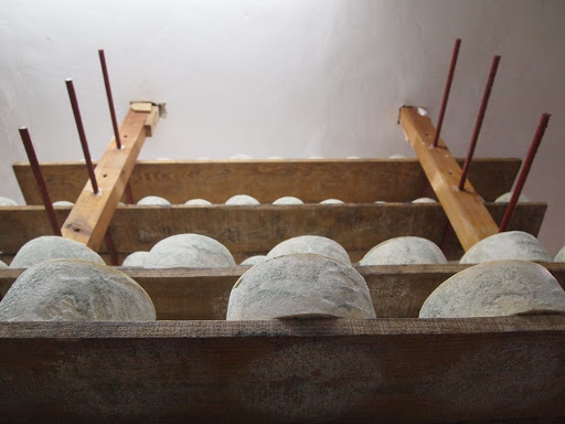 It was amazing to see their storage/aging area. They produce 120,000 kg of cheese annually. They are stored on wooden shelves, which impart some flavor and aroma to the cheese, and are flipped every 3-4 days. After three months, they brush the cheese (now with a harder surface) with olive oil.