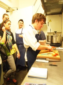 After a tour of the city of Bilbao, we walked over to the Guggenheim Museum to have lunch at the restaurant. The chef de cuisine (or sous chef?) took us on a brief tour of the kitchen.