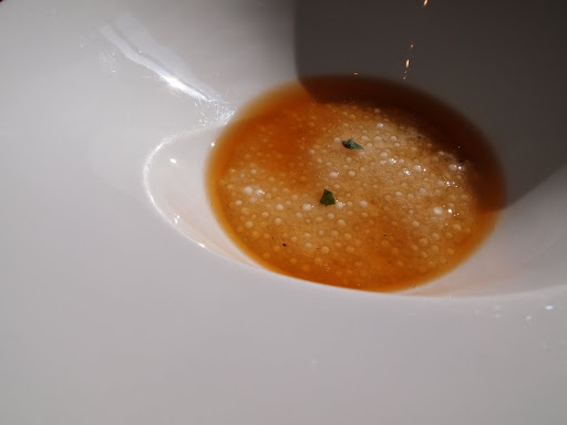 Red pepper/chick pea broth with tapioca pearls (there was a slight bitterness to it… it was sweet and savory- reminded me of something I would eat at a ryokan in Japan)