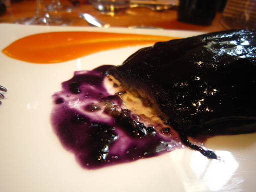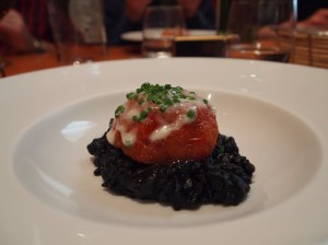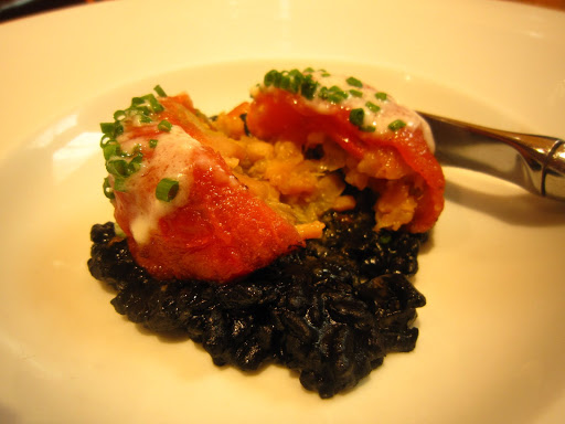 Smoked tomato stuffed with seafood, served with squid ink risotto. The smokiness of the tomato was subtle, which was nice, but the dish overall smelled quite fishy. The squid ink risotto was right on point though.