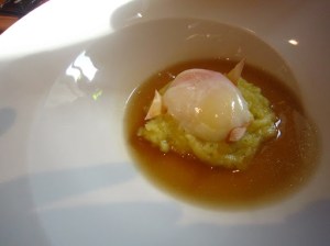 Poached egg with onion broth. The onion broth was SO good- really concentrated flavor of onion (must be the way they extract it using their equipment). The egg was beautiful as well.