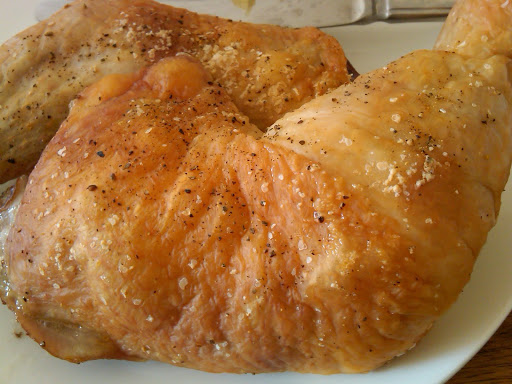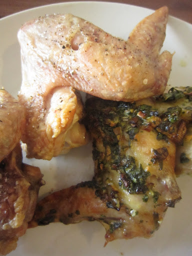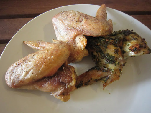 I was looking forward to eating the chicken more than the beef. I simply seasoned the chicken wings with salt and black pepper (no oil) and baked them in the oven (350 degrees and sometimes 450, until the skin puffed up and got crisp). I marinated some of the wings in a scallion marinade. The chicken was incredible. Not as firm as other free range chicken I’ve eaten, and tasted like chicken! Probably the best chicken I’ve had in the US! I love cooking chicken without oil because the skin gets extremely crispy.