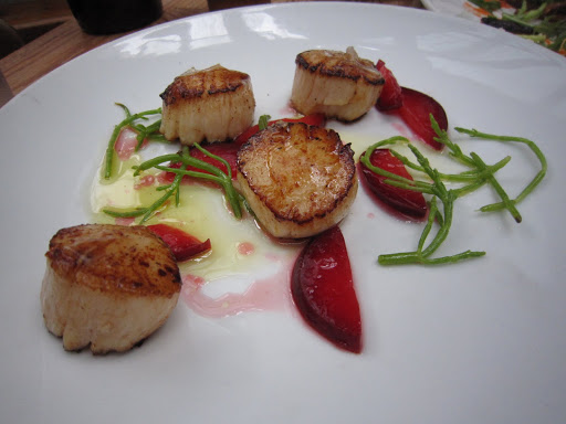 Best out of the entrees. Diver scallops with pickled plum, sea beans and lardo