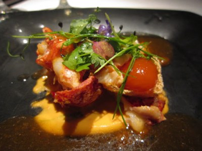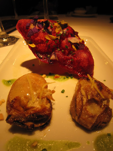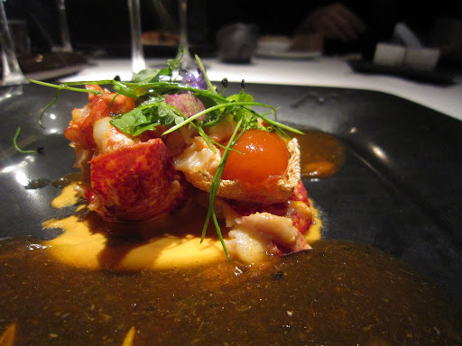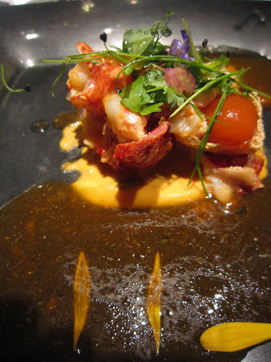 Lobster: Patata, bogavente y copaiba- the red thing looked like a tomato but it burst in my mouth!