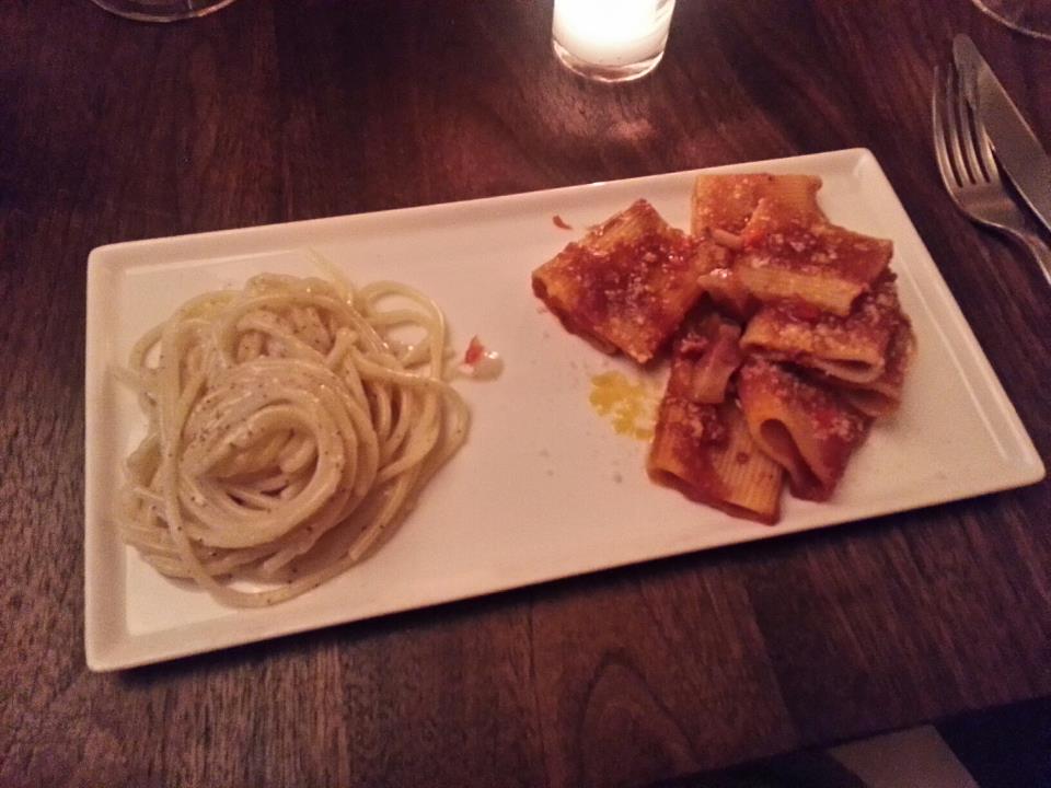 We ordered the spaghetti cacio e pepe (pecorino, parmigiano reggiano and black pepper) because I wanted to see how well they could make something simple. We also ordered the schiaffoni all’amatriciana. I absolutely loved them both, especially the cacio e pepe. I haven’t had such good pasta in a while and I can say without hesitation that they serve some of the best pasta in New York City (I have to go back and try other pastas there). They finished the amatriciana with jabaneros and chili oil, which was a nice touch.