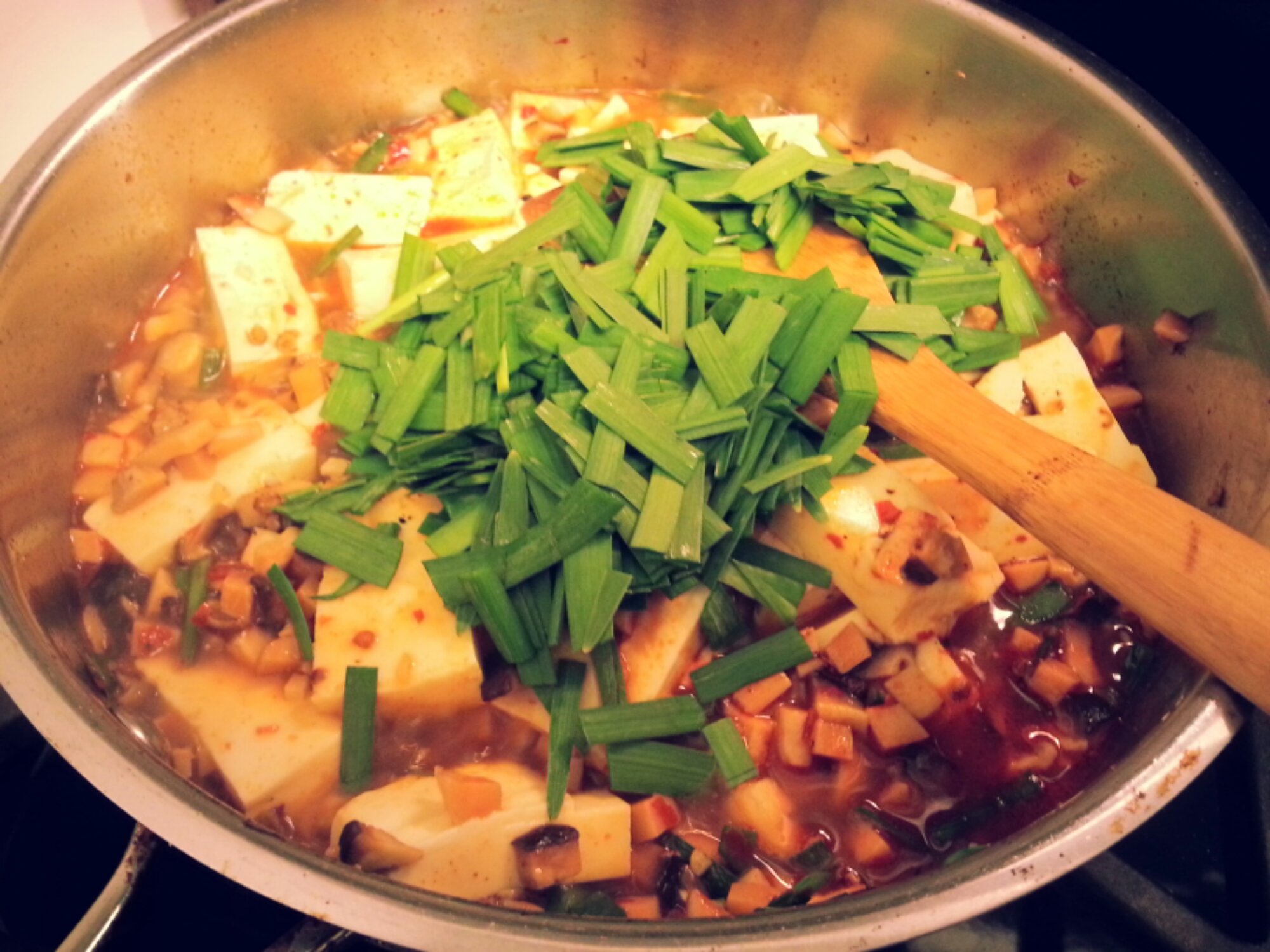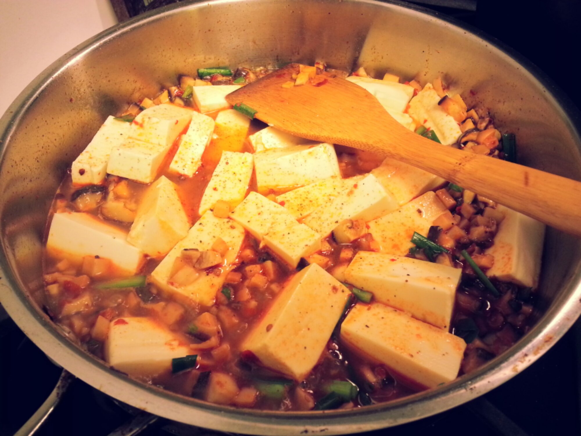 My boyfriend and I try to reduce the amount of meat we eat at home, so I have been playing around with vegetarian recipes (or I guess pescatarian to be precise). I find that Indian and Chinese (especially Sichuan) are the most satisfying types of cuisines when it comes to meatless cooking. This is a meatless version of mapo tofu.