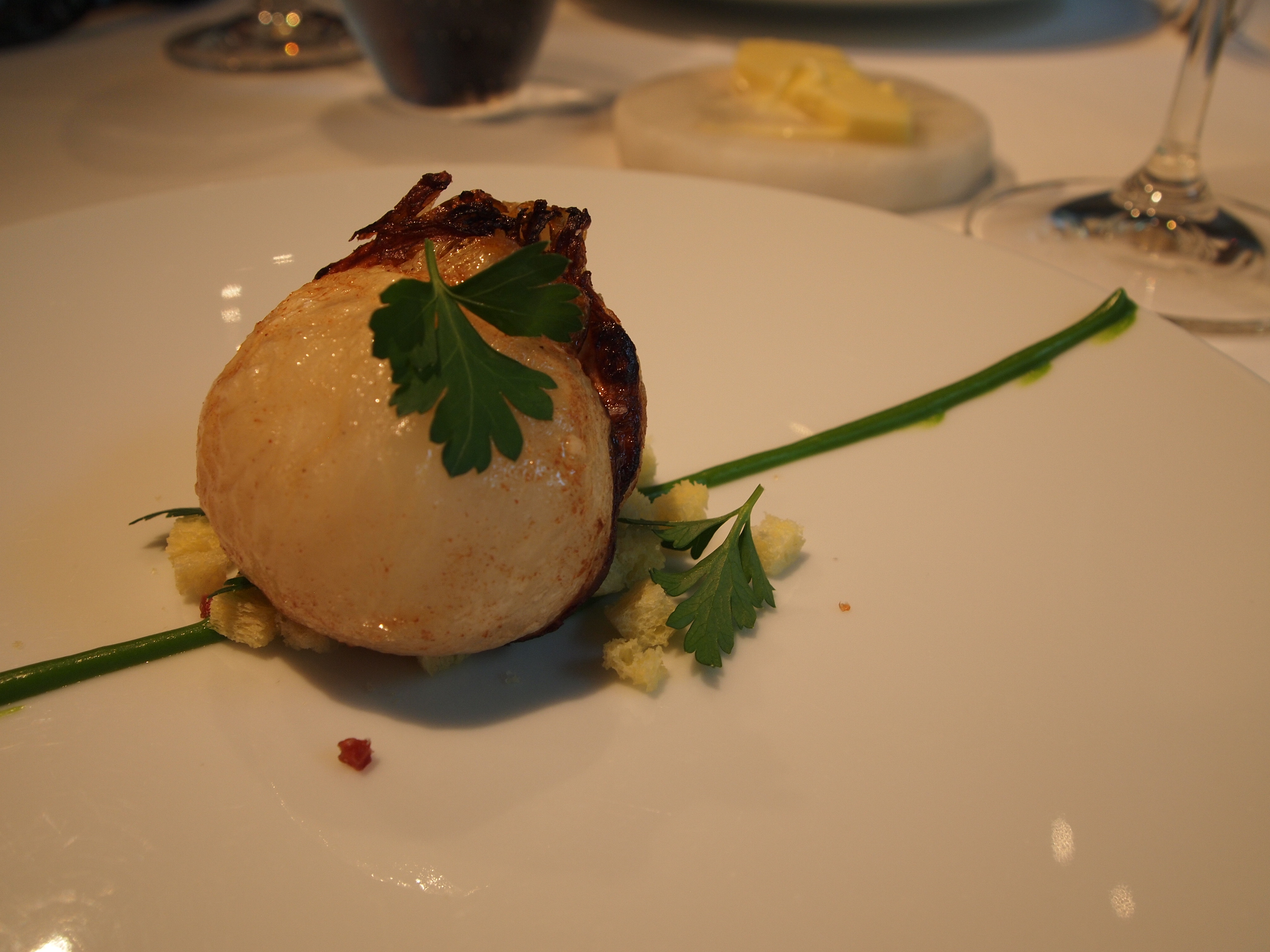 The next course was the signature dish of L’Effervescence. The whole turnip that has been cooked for four hours. Our server pointed out that they serve this dish throughout the year because turnip tastes different each season. I had seen photos of this dish on Instagram and was keen on tasting it. It was the juiciest turnip I’ve ever had and although it was cooked for such a long time, it still retained enough texture. It was served very plain, with a parsley emulsion and some tiny croutons and basque pork bits. This was served for both courses.