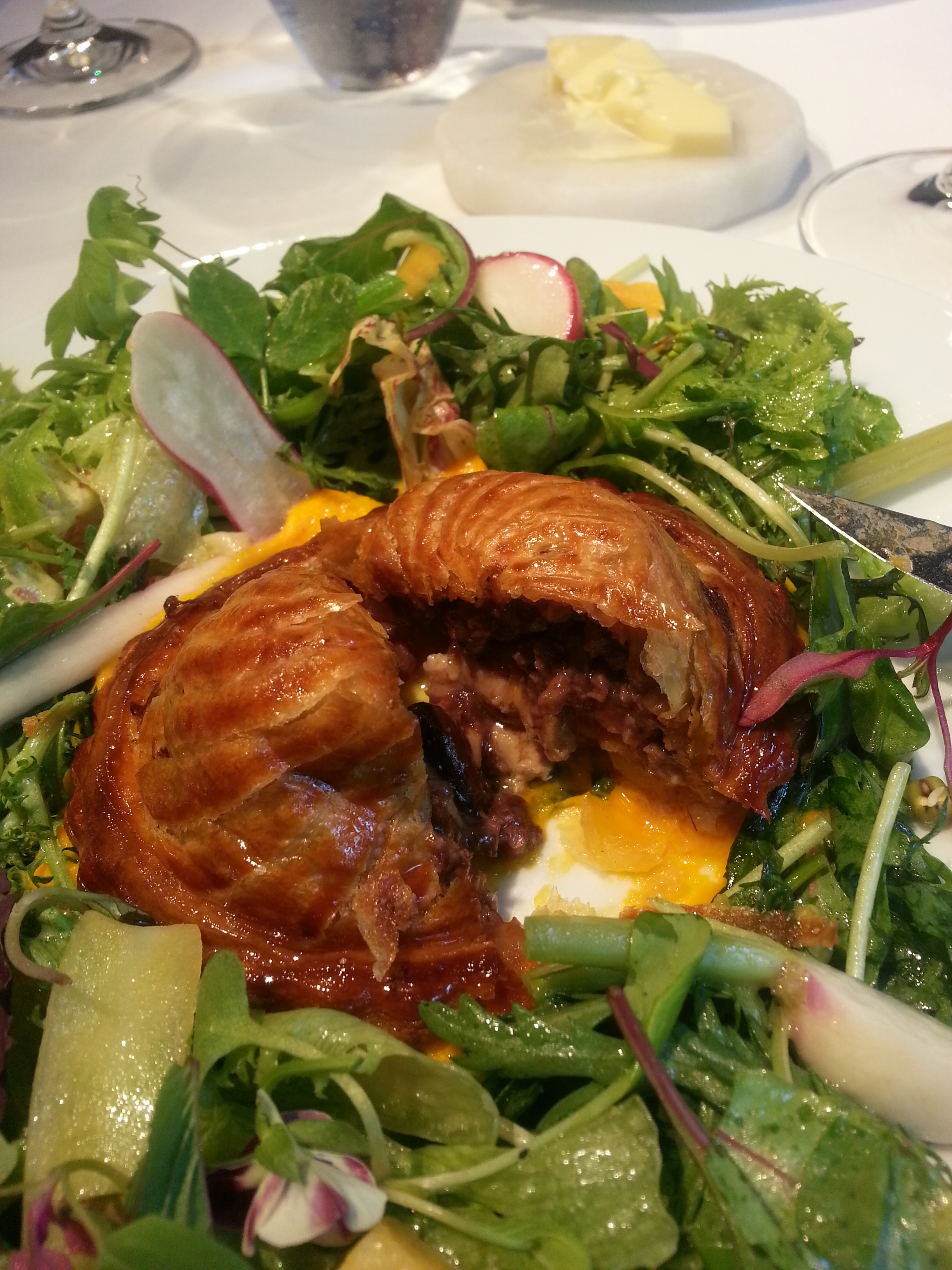 We told the sommelier what kind of wine we wanted and we had a couple of glasses each of different white wines (embarrassed to say I can’t quite remember what they were but we there was a Sancerre and a German wine similar to a dry Riesling, which I requested). All wines were surprisingly reasonably priced.