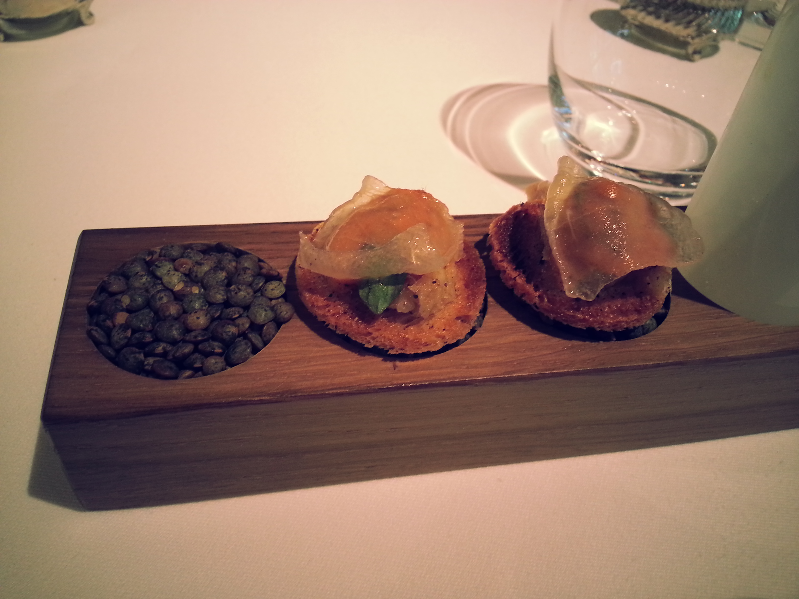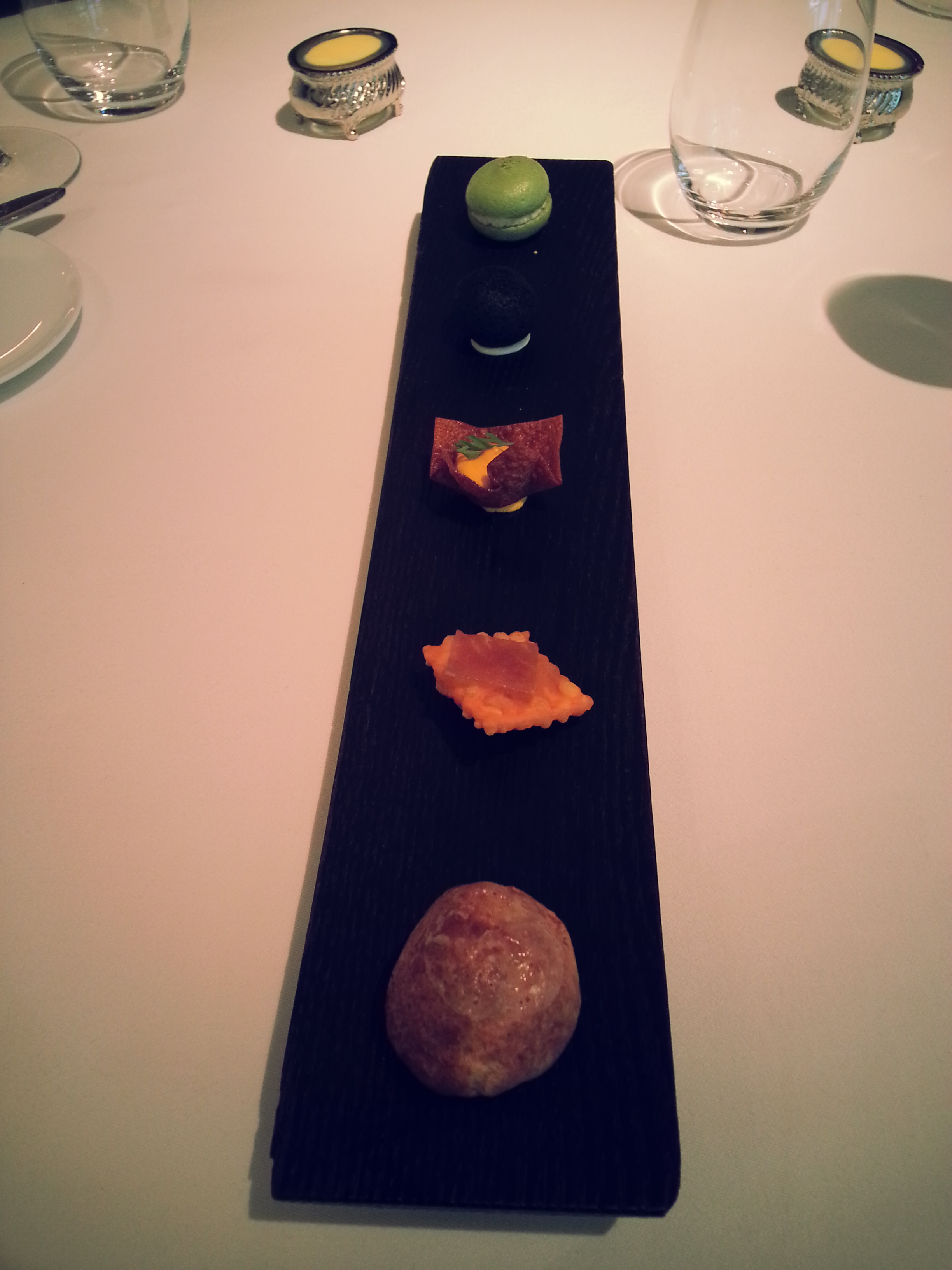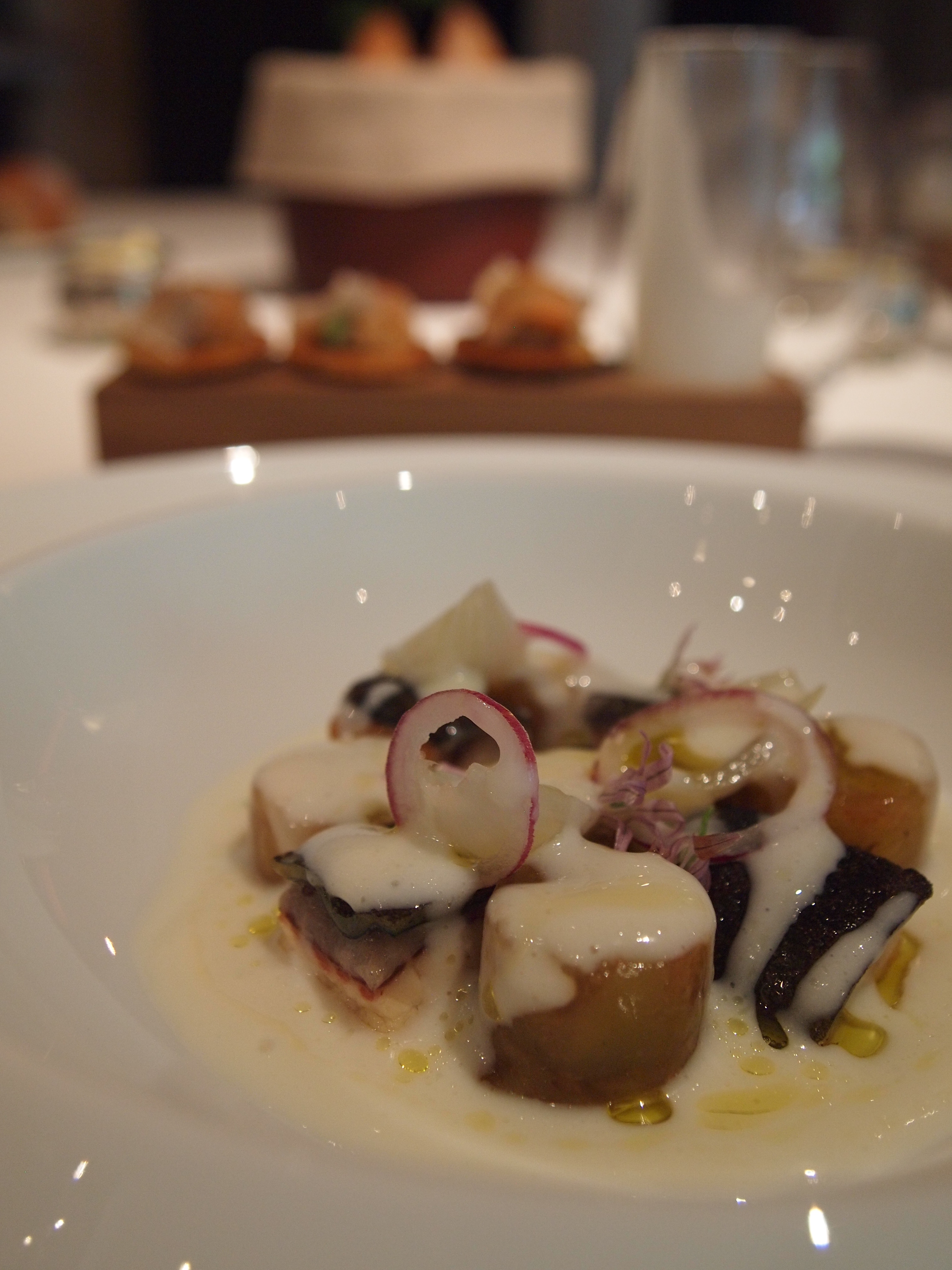 The amuse bouche consisted of five different bites, including stuff like a goya (bitter gourd) macaroon, carrot tuile with carrot puree and… embarrassingly I can’t remember the others! But they were all really good I swear >.< each piece tasted like its main ingredient.