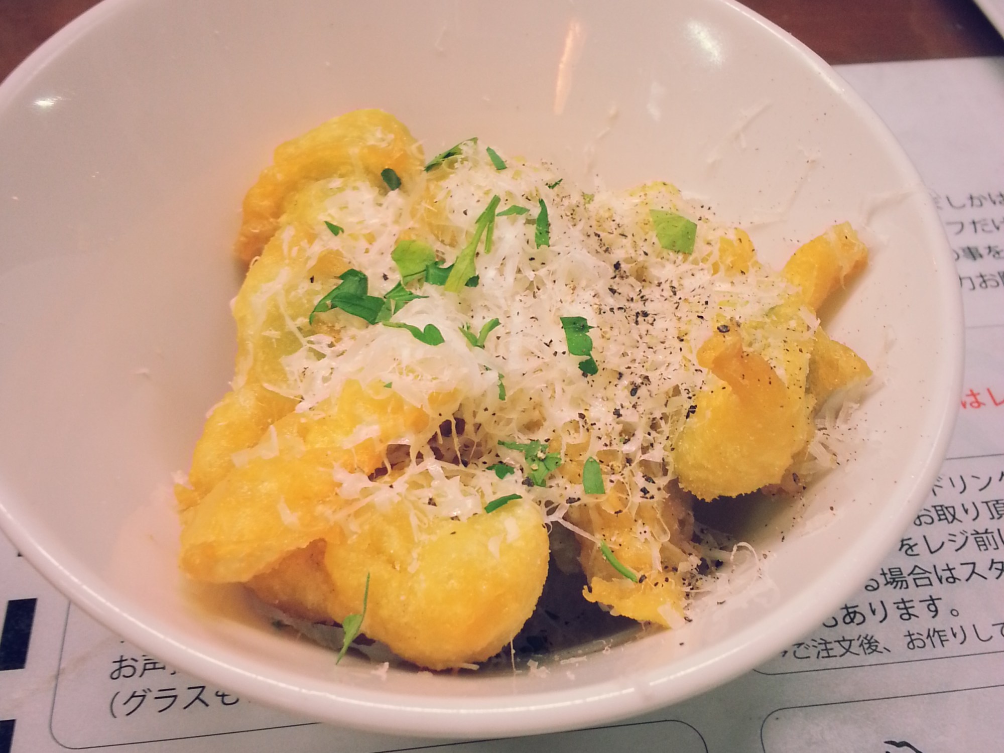Mashika used to be a たばこや(tabako-ya), a tobacco/cigarette shop and the owner’s grandson inherited this little shop and transformed it into a cool concept. A cigarette and sandwich shop by day, and a self-service Japanesified Italian bistro by night. They have a list of rules for the customers to follow, including No.1: This place is self-service but please let the staff know when taking anything. No. 2: All orders must be made by the cashier (extra items can be ordered later) etc. This little rule chart explains that these rules exist so that they can serve great tasting food to us customers at the lowest possible cost. Fine by me!