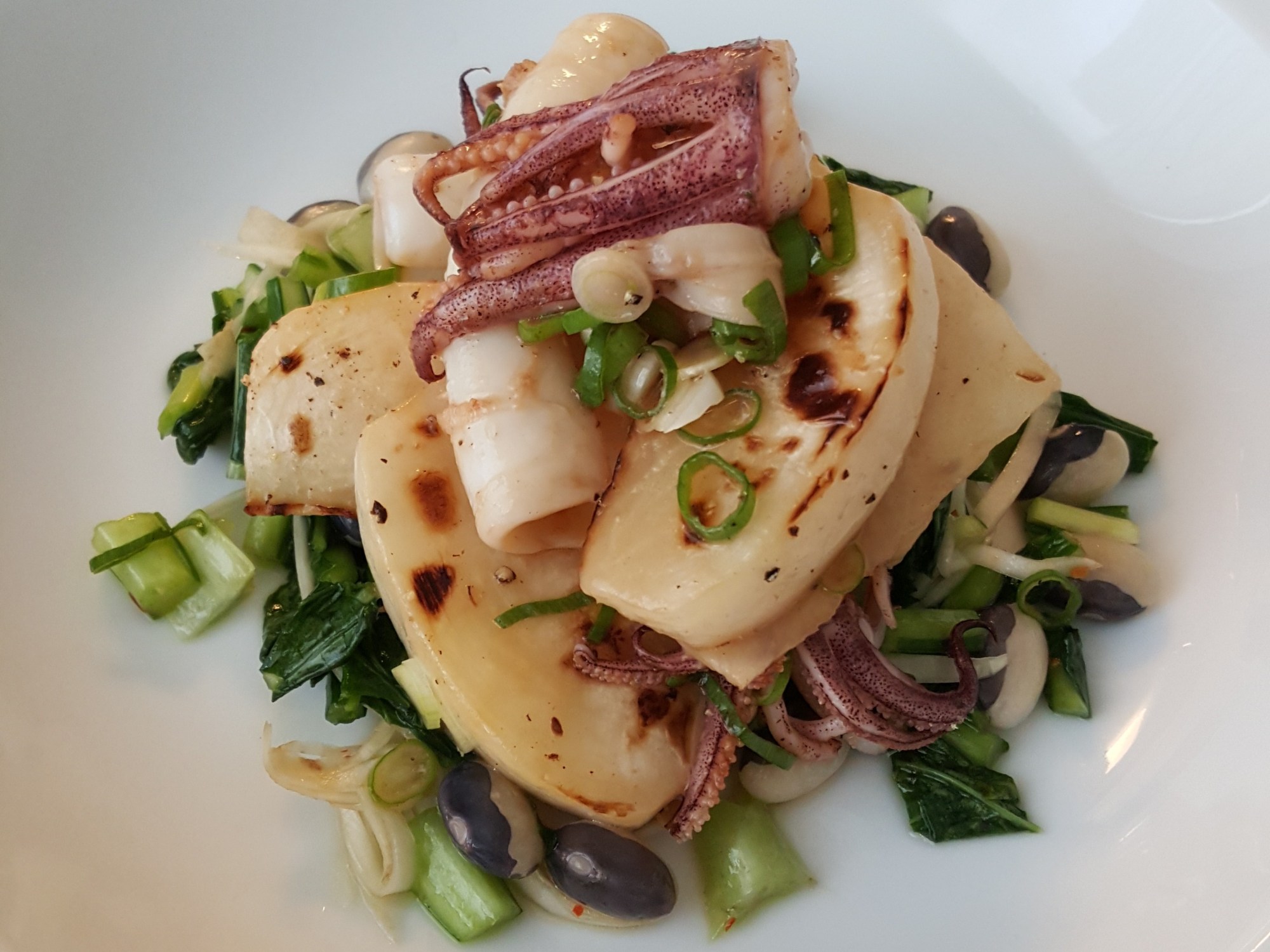 - Sear the squid in a pan without oil on high heat, and add to the turnips.